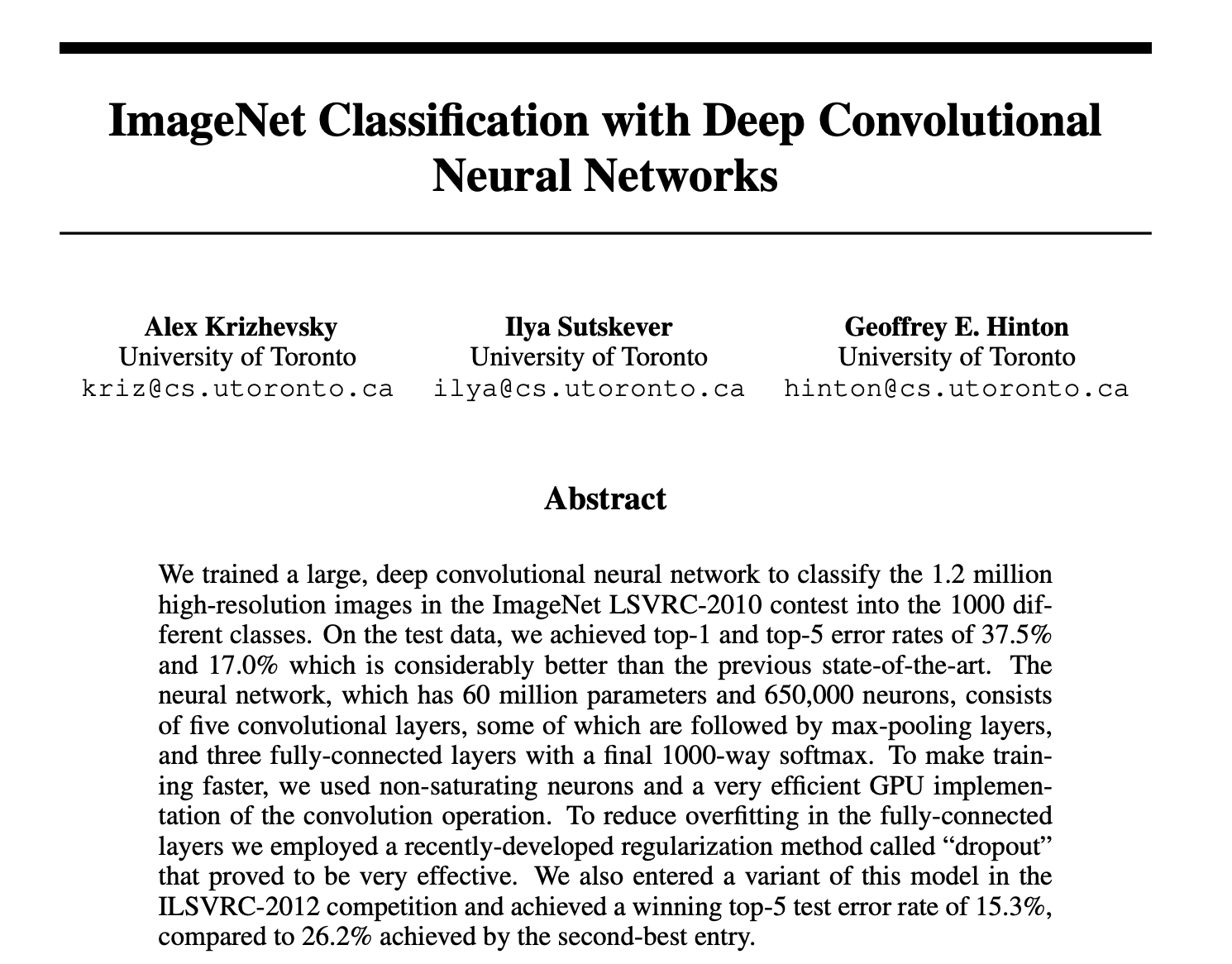 用「三遍讀論文法」從標題、摘要與討論切入 AlexNet:為何它能在 ImageNet 一戰成名、論文想傳達的核心訊息是什麼,以及哪些結論放到今日仍成立、哪些需要更精準的詮釋。